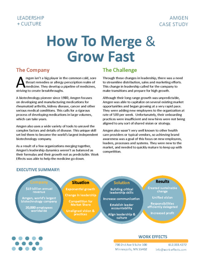 The Situation According to the Association for Corporate Growth (ACG), eighty five percent of mergers and acquisitions fail. Why is this? Strategies and financial data of merging companies are thoroughly researched, but culture is rarely brought to the table. As a result, these perfectly planned strategies become stagnated by competing cultures. In 2014, the Arizona…